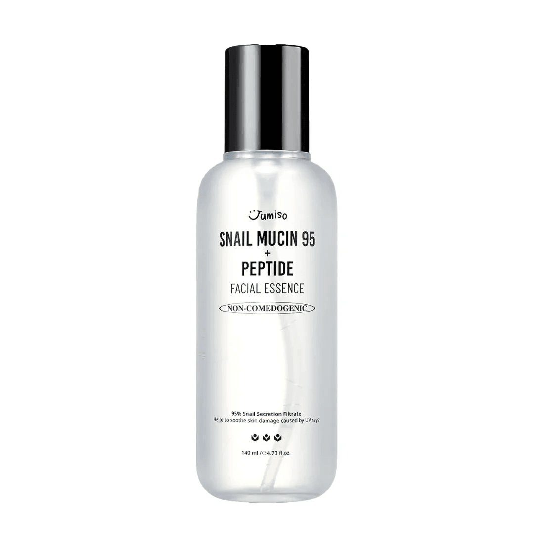 Nuestra Esencia Hidratante y Reparadora JUMISO - Snail Mucin 95 + Peptide Facial Essence 140 ML es el producto perfecto para mejorar la textura de tu piel y ayudar en el proceso de curación de daños causados por el sol.Con un contenido impresionante del 95% de Snail Mucin (mucina de caracol), esta esencia hidrata tu piel de manera refrescante, dejándola suave y radiante. Los 5 péptidos añadidos en la fórmula potencian el efecto antienvejecimiento, proporcionando una piel más firme y joven.