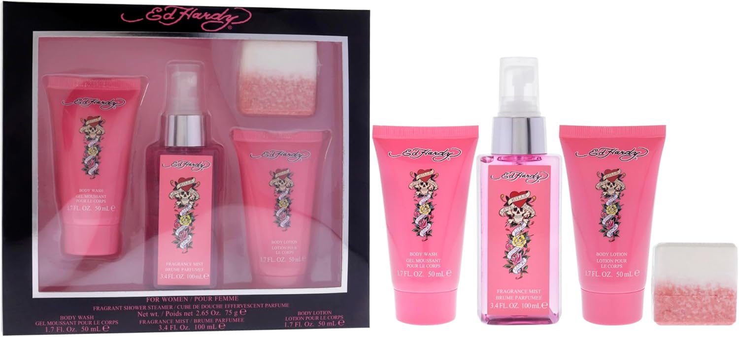 Adquiere tu Women's Perfume Gift Set by Ed Hardy, 4 Pieces Include Fragrance Mist, Body Lotion, Body Wash, and Fragrant Bath Fizz en Stock. Disponible para envío inmediato. Envío a todo México. Recibe en 5-7 días hábiles. Compra 100% segura y garantizada.